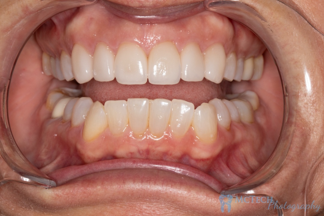 Treatment consisted of placing ten porcelain veneers on the upper teeth, which resulted in a very natural appearance. Treatment required two appointments, a few days apart. The lower teeth were treated with composite bonding due to financial constraints.